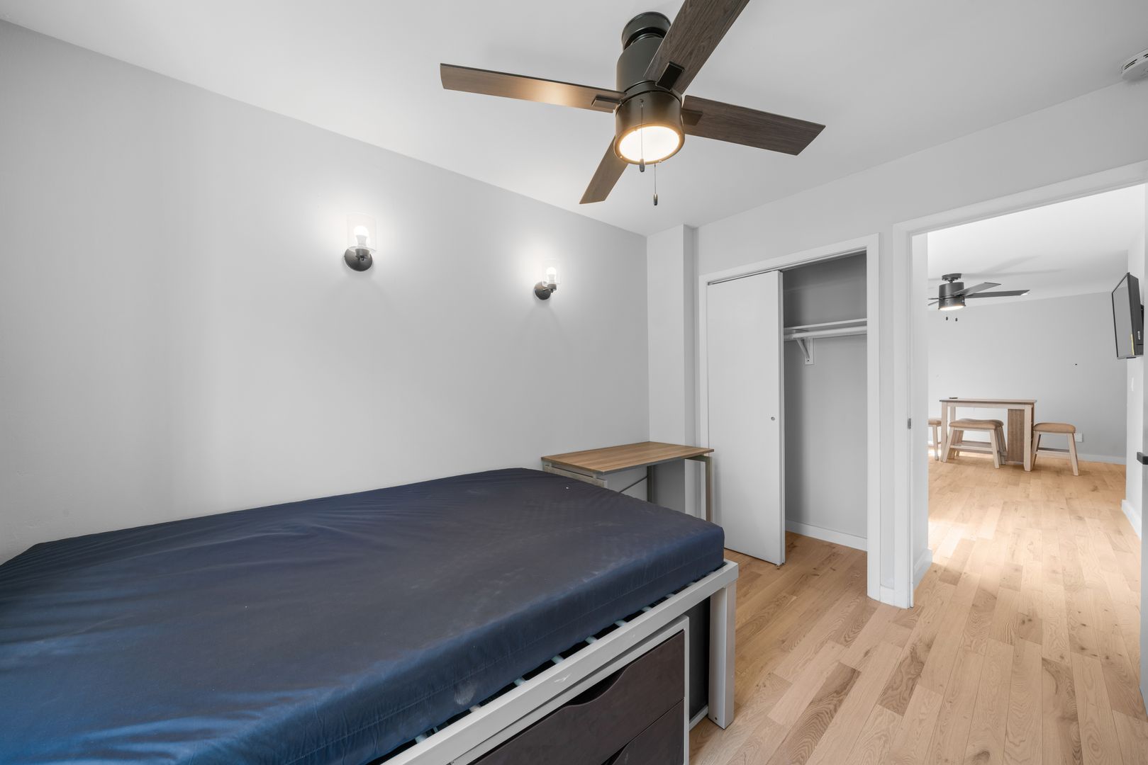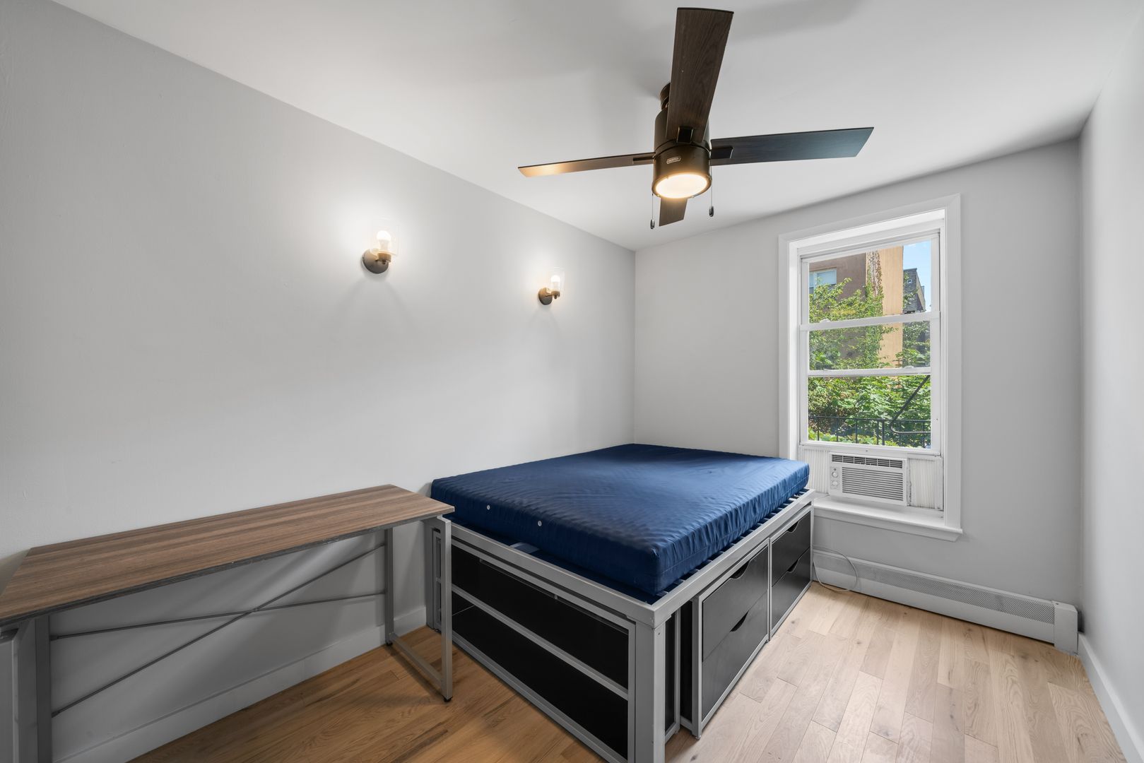 • Spacious bedrooms with windows, closets, and A/C units