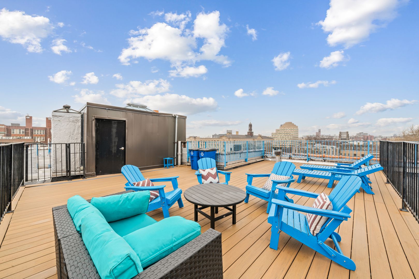 The building includes a finished roof deck, lounge, Peloton room, brand new entryway and hallways, security cameras throughout, video intercom, and more!