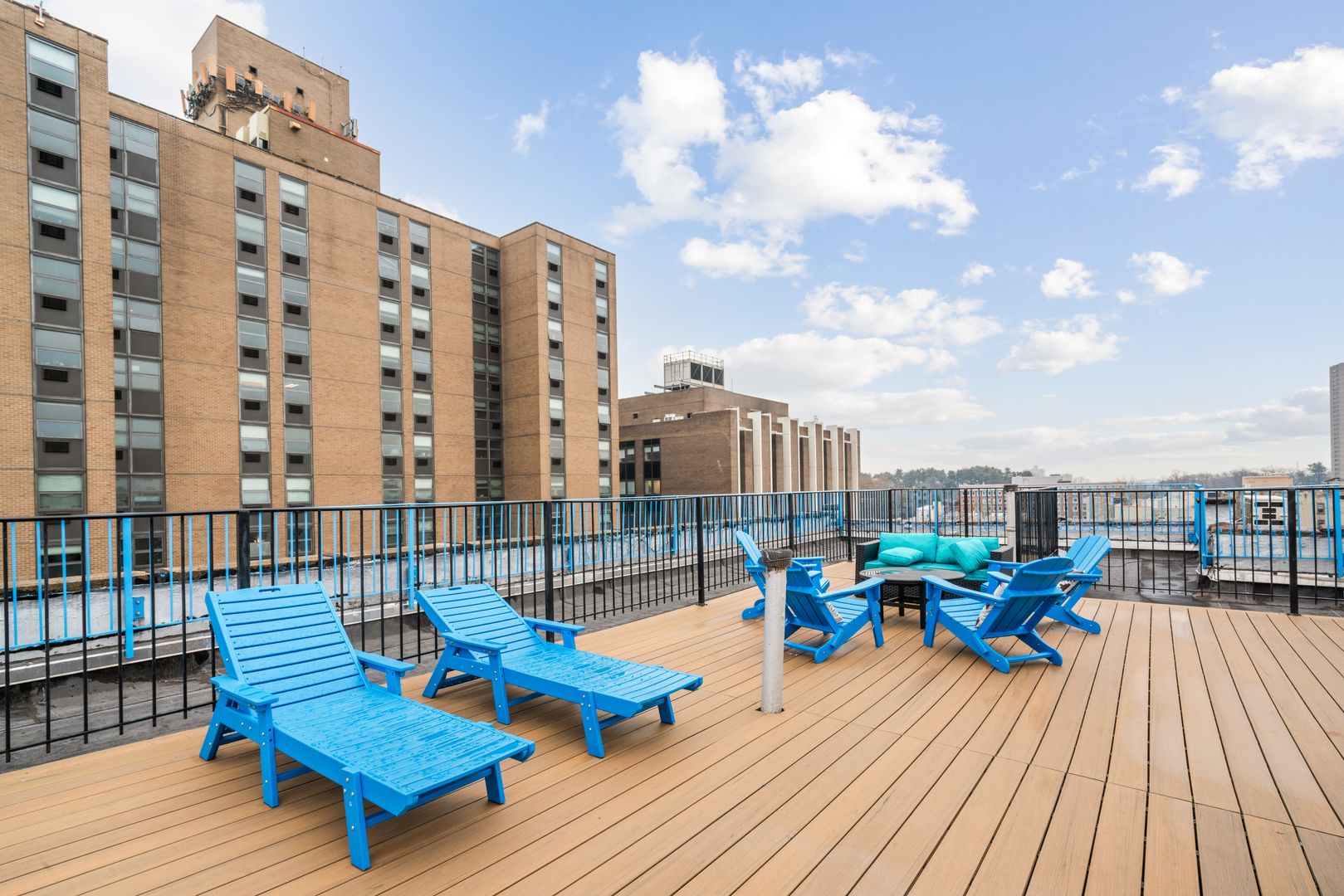 558 East 191st offers a finished roof deck, Peloton room, student lounge, package lockers, video intercom, and fully furnished units.